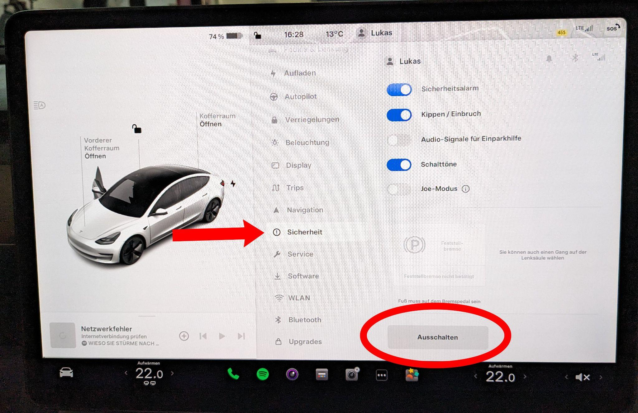 Navigálj a Biztonság menüpontra, és kapcsold ki az infotainment rendszert. Ettől kezdve ne érintsd meg a vezetőülést!