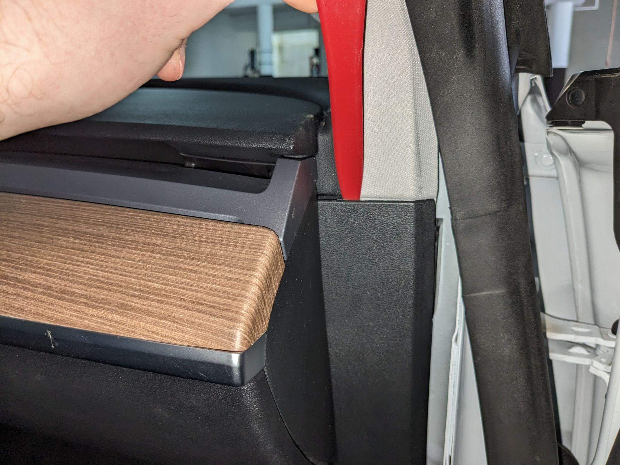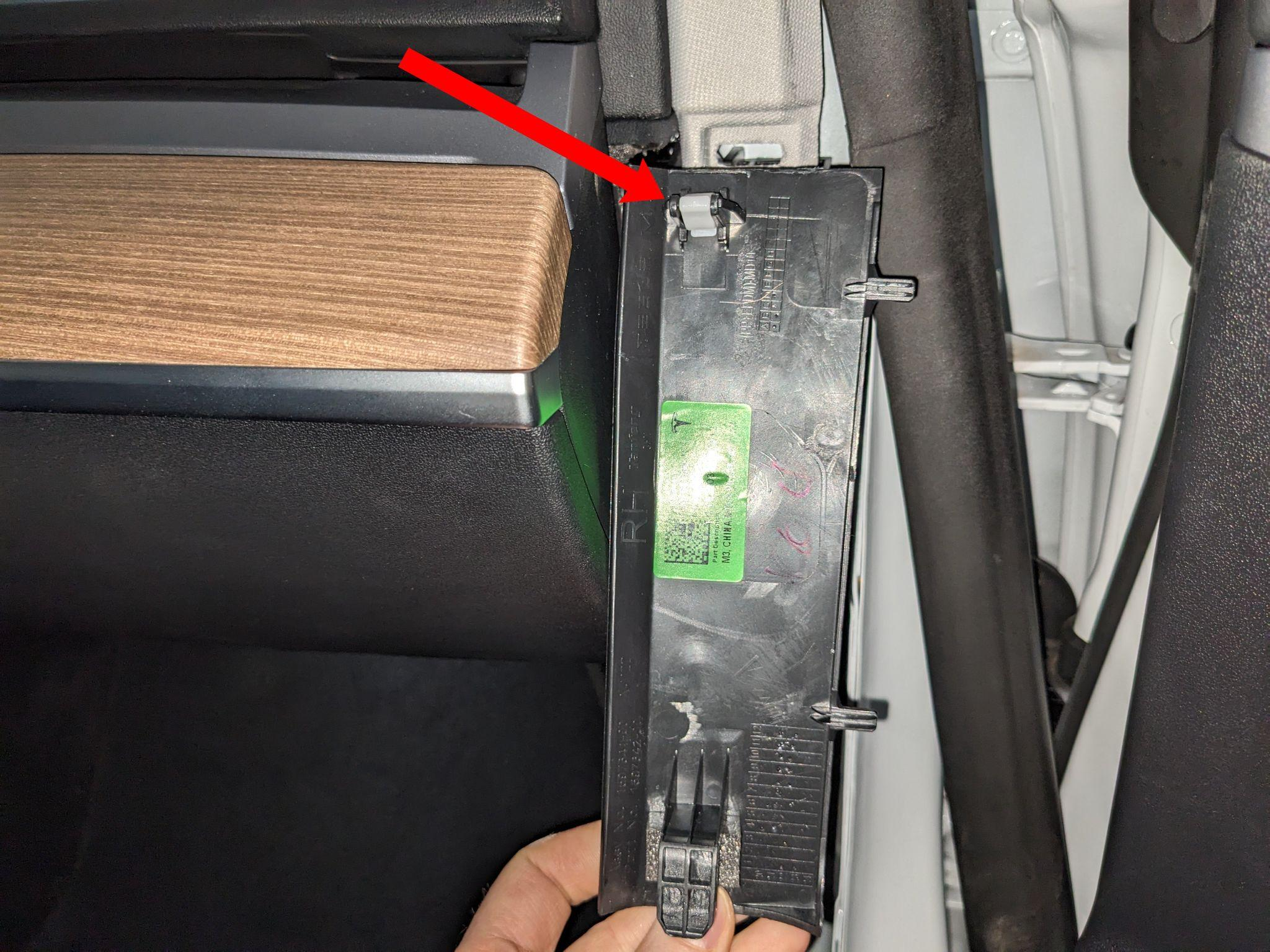 Távolítsd el az ajtó melletti felső panelt. A panelt főleg a jelölt klipsz tartja.
